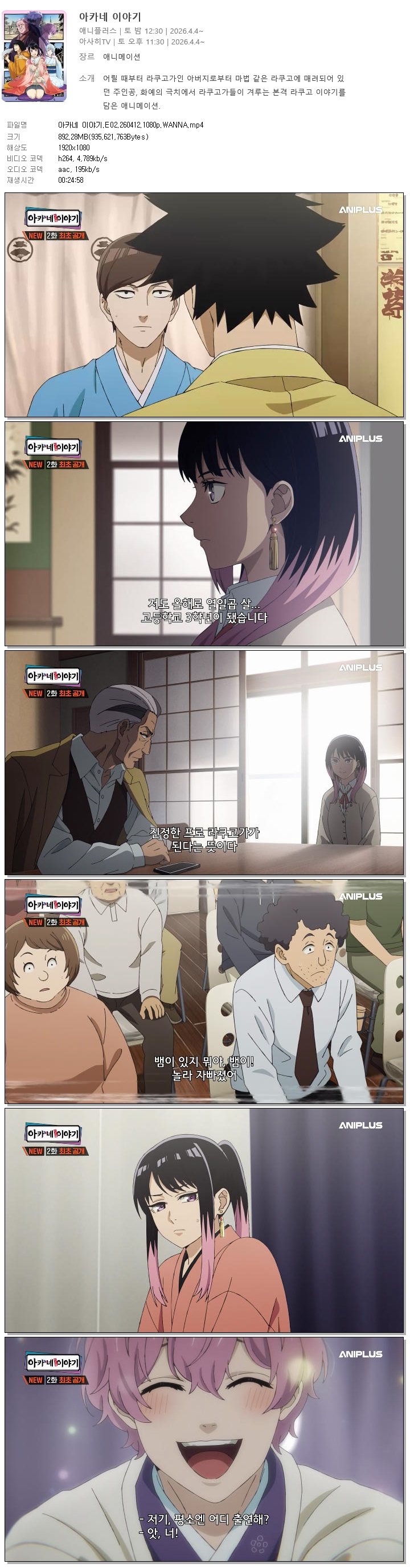 auto_awesome 애니 아카네 이야기 E02 아카네 이야기.E02.260412.1080p.WANNA person 홀리*** calendar_today 2026.04.11 visibility 7,838 다운로드 1개 파일 folder_zip 아카네 이야기.E02.260412.1080p.WANNA.mp4 892 MB download