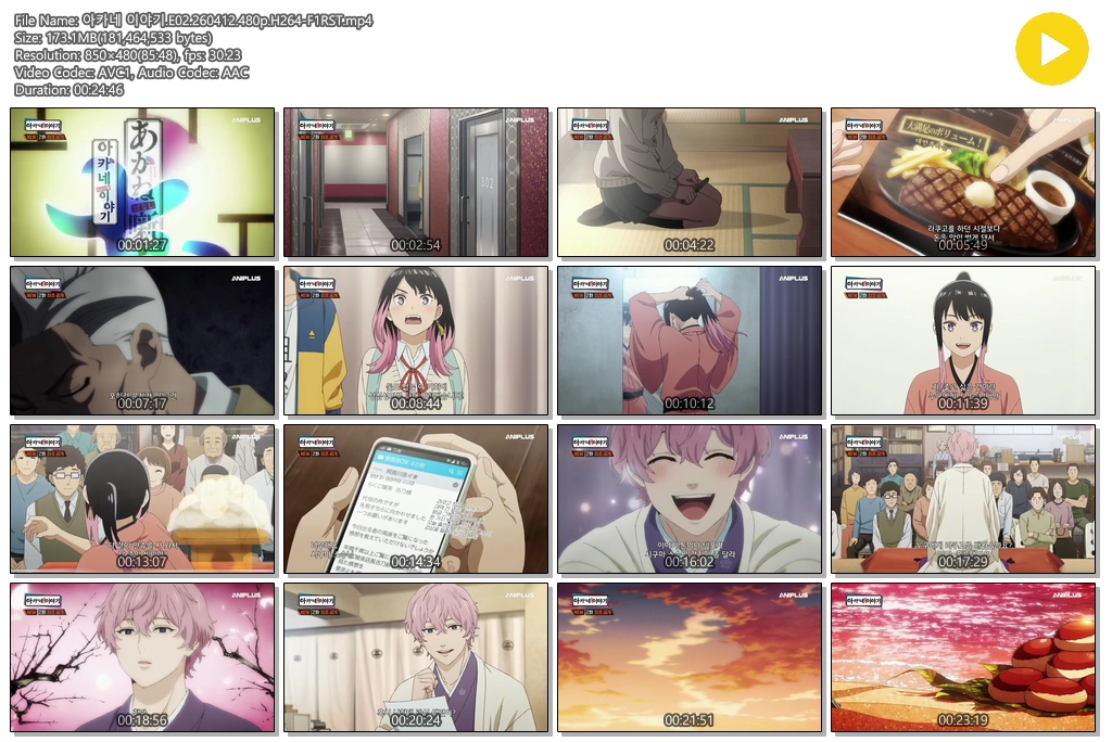 auto_awesome 애니 아카네 이야기 E02 아카네 이야기.E02.260412.480p.H264-F1RST person se*** calendar_today 2026.04.11 visibility 7,313 다운로드 1개 파일 folder_zip 아카네 이야기.E02.260412.480p.H264-F1RST.mp4 173 MB download