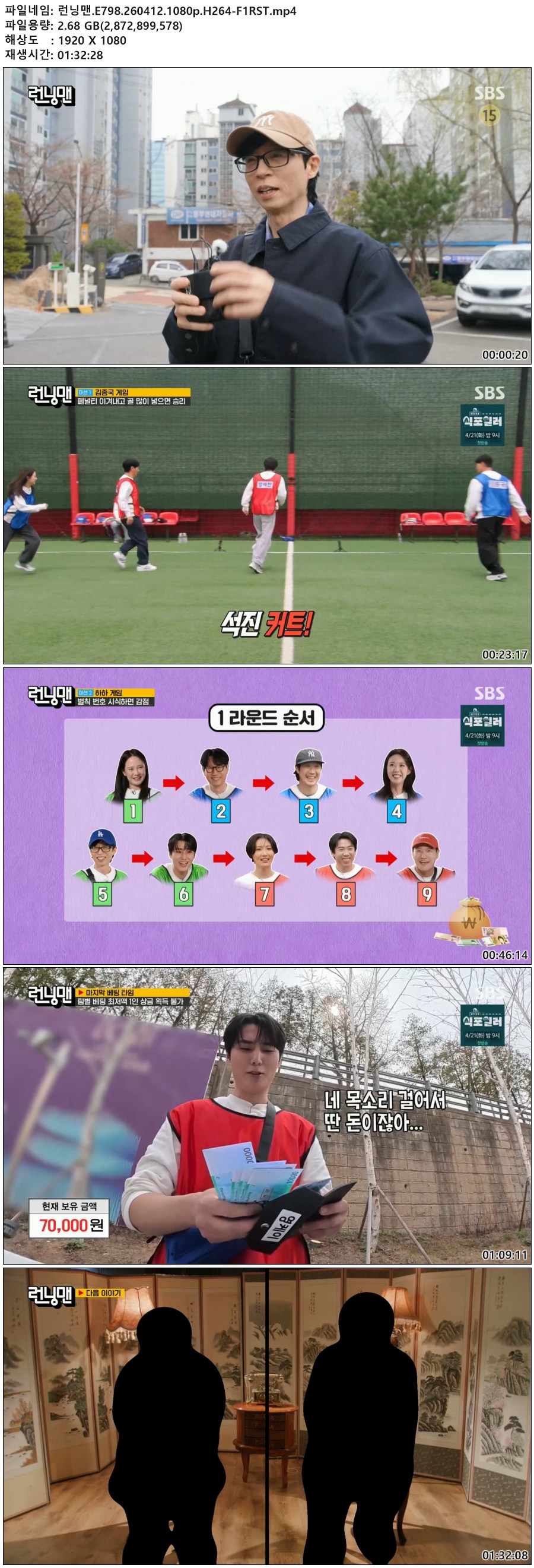 play_circle 동영상 런닝맨 E798 F1RST 런닝맨.E798.260412.1080p.H264-F1RST person qk*** calendar_today 2026.04.12 visibility 5,531 다운로드 1개 파일 folder_zip 런닝맨.E798.260412.1080p.H264-F1RST.mp4 2.7 GB download