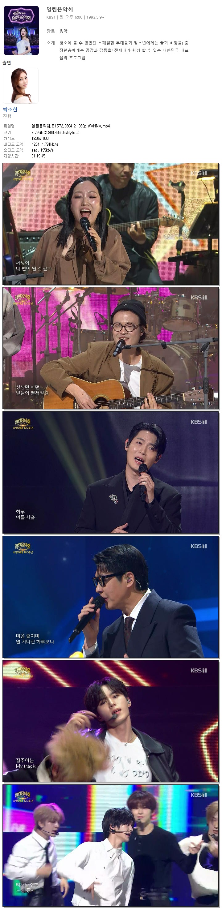 play_circle 동영상 열린음악회 E1572 WANNA 열린음악회.E1572.260412.1080p.WANNA person 홀리*** calendar_today 2026.04.12 visibility 5,097 다운로드 1개 파일 folder_zip 열린음악회.E1572.260412.1080p.WANNA.mp4 2.8 GB download