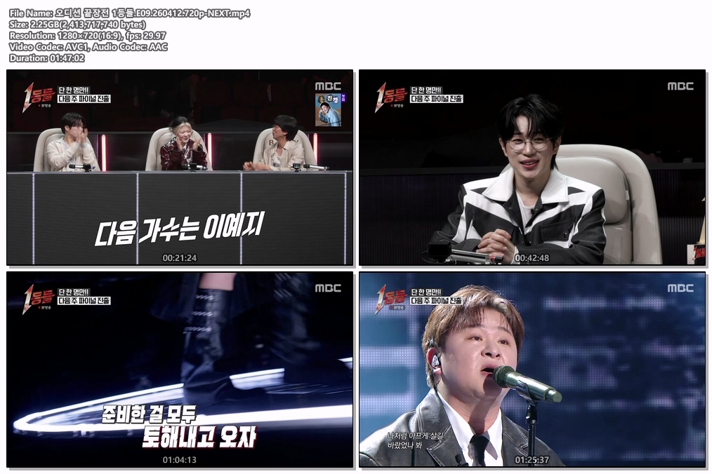 play_circle 동영상 오디션 끝장전 1등들 오디션 끝장전 1등들.E09.260412.720p-NEXT person he*** calendar_today 2026.04.12 visibility 6,191 다운로드 1개 파일 folder_zip 오디션 끝장전 1등들.E09.260412.720p-NEXT.mp4 2.2 GB download