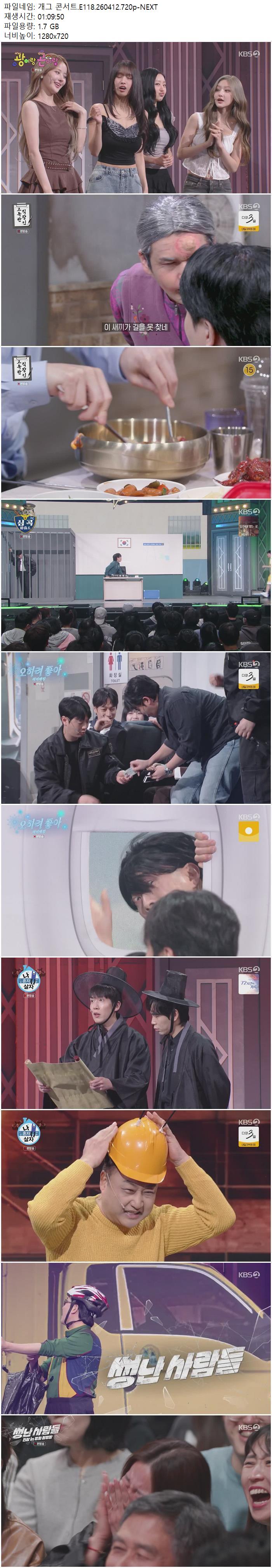 play_circle 동영상 개그 콘서트 E118 개그 콘서트.E118.260412.720p-NEXT person Ze*** calendar_today 2026.04.12 visibility 7,343 다운로드 1개 파일 folder_zip 개그 콘서트.E118.260412.720p-NEXT.mp4 1.7 GB download