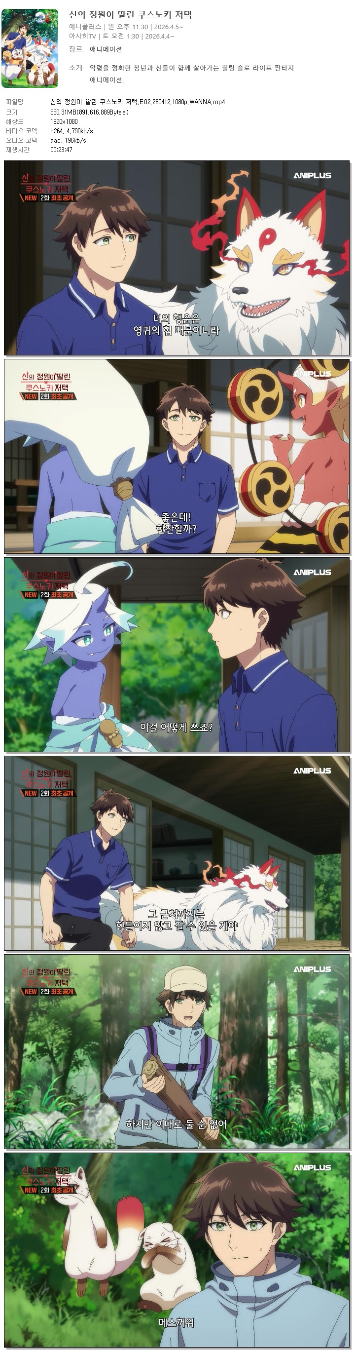 auto_awesome 애니 신의 정원이 딸린 신의 정원이 딸린 쿠스노키 저택.E02.260412.1080p.WANNA person 홀리*** calendar_today 2026.04.12 visibility 7,150 다운로드 1개 파일 folder_zip 신의 정원이 딸린 쿠스노키 저택.E02.260412.1080p.WANNA.mp4 850 MB download