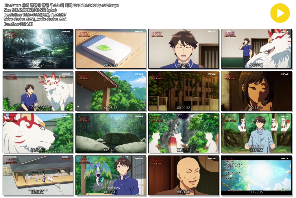 auto_awesome 애니 신의 정원이 딸린 신의 정원이 딸린 쿠스노키 저택.E02.260412.1080p-NEXT person se*** calendar_today 2026.04.12 visibility 4,146 다운로드 1개 파일 folder_zip 신의 정원이 딸린 쿠스노키 저택.E02.260412.1080p-NEXT.mp4 916 MB download