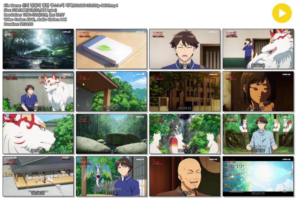 auto_awesome 애니 신의 정원이 딸린 신의 정원이 딸린 쿠스노키 저택.E02.260412.720p-NEXT person se*** calendar_today 2026.04.12 visibility 5,618 다운로드 1개 파일 folder_zip 신의 정원이 딸린 쿠스노키 저택.E02.260412.720p-NEXT.mp4 518 MB download