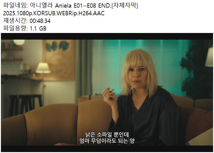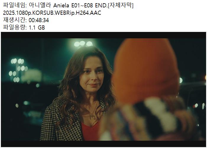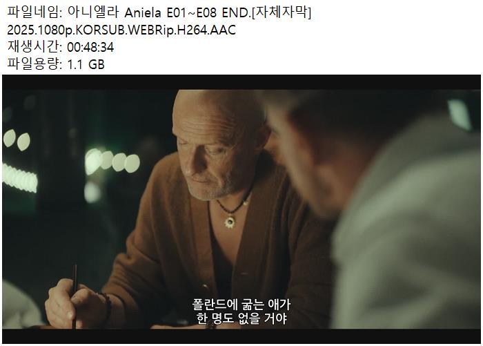 tv 드라마 아니엘라 E01 E08 아니엘라 E01~E08 END.[자체자막] 2025.1080p.KORSUB.WEBRip.H264.AAC person 남미*** calendar_today 2026.04.13 visibility 4,596 다운로드 8개 파일 folder_zip 아니엘라 Aniela E01 [자체자막] 2025.1080p.KORSUB.WEBRip.H264.AAC.mp4 8.1 GB download folder_zip 아니엘라 Aniela E02 [자체자막] 2025.1080p.KORSUB.WEBRip.H264.AAC.mp4 download folder_zip 아니엘라 Aniela E03 [자체자막] 2025.1080p.KORSUB.WEBRip.H264.AAC.mp4 download folder_zip 아니엘라 Aniela E04 [자체자막] 2025.1080p.KORSUB.WEBRip.H264.AAC.mp4 download folder_zip 아니엘라 Aniela E05 [자체자막] 2025.1080p.KORSUB.WEBRip.H264.AAC.mp4 download folder_zip 아니엘라 Aniela E06 [자체자막] 2025.1080p.KORSUB.WEBRip.H264.AAC.mp4 download folder_zip 아니엘라 Aniela E07 [자체자막] 2025.1080p.KORSUB.WEBRip.H264.AAC.mp4 download folder_zip 아니엘라 Aniela E08 [자체자막] 2025.1080p.KORSUB.WEBRip.H264.AAC.mp4 download
