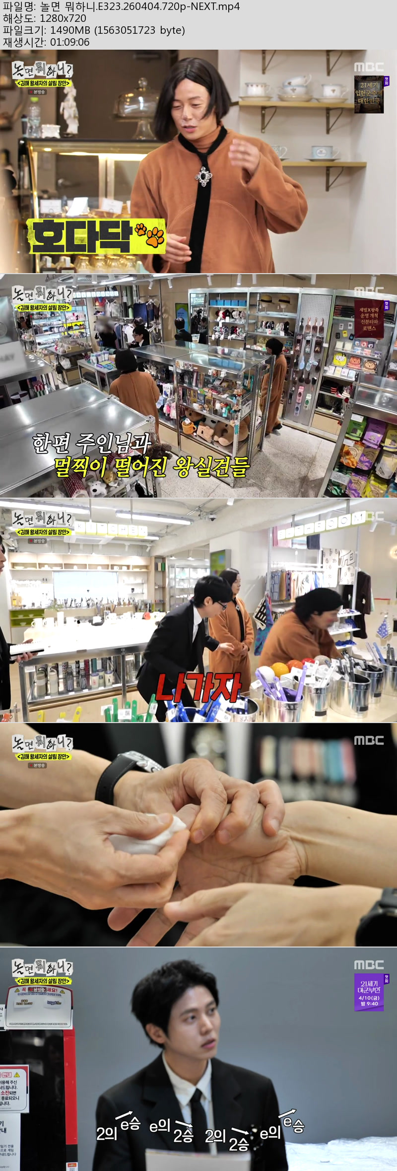 play_circle 동영상 놀면 뭐하니 E323 놀면 뭐하니.E323.260404.720p-NEXT person kk*** calendar_today 2026.04.13 visibility 7,340 다운로드 1개 파일 folder_zip 놀면 뭐하니.E323.260404.720p-NEXT.mp4 1.5 GB download