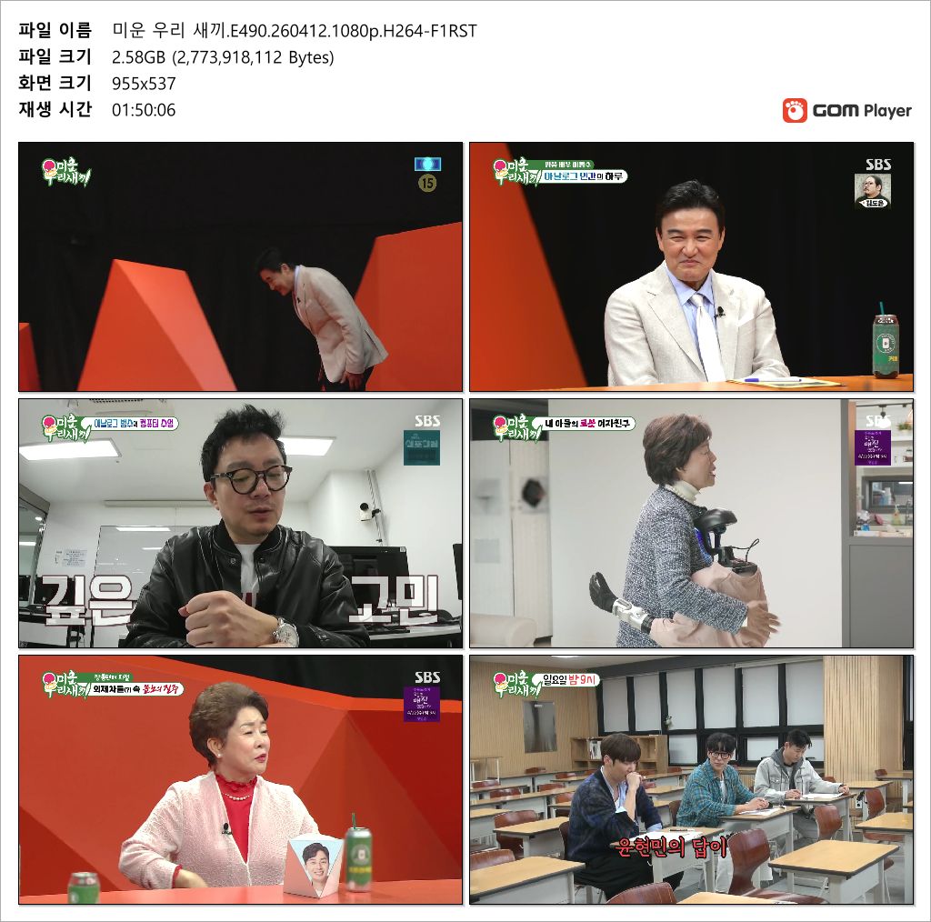 play_circle 동영상 미운 우리 새끼 미운 우리 새끼.E490.260412.1080p.H264-F1RST person gm*** calendar_today 2026.04.13 visibility 4,285 다운로드 1개 파일 folder_zip 미운 우리 새끼.E490.260412.1080p.H264-F1RST.mp4 2.6 GB download