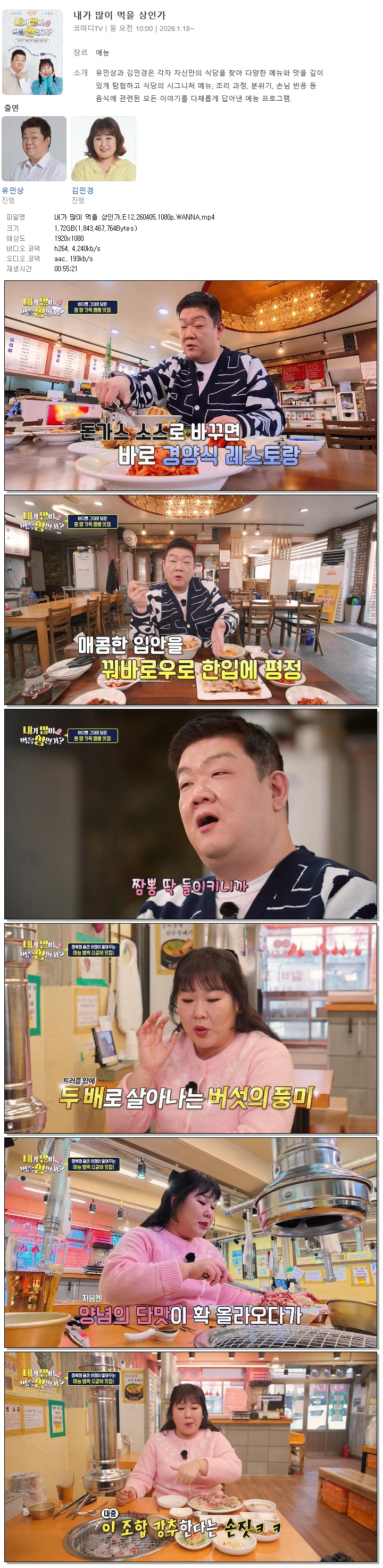 play_circle 동영상 내가 많이 먹을 내가 많이 먹을 상인가.E12.260405.1080p.WANNA person 홀리*** calendar_today 2026.04.13 visibility 5,442 다운로드 1개 파일 folder_zip 내가 많이 먹을 상인가.E12.260405.1080p.WANNA.mp4 1.7 GB download