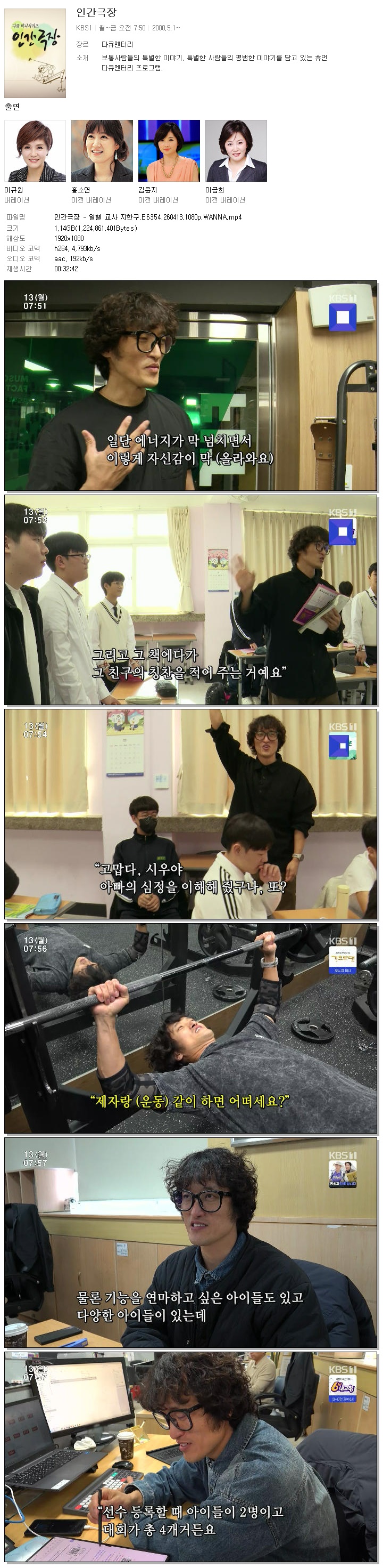 play_circle 동영상 인간극장 열혈 교사 인간극장 - 열혈 교사 지한구.E6354.260413.1080p.WANNA person 홀리*** calendar_today 2026.04.13 visibility 3,110 다운로드 1개 파일 folder_zip 인간극장 - 열혈 교사 지한구.E6354.260413.1080p.WANNA.mp4 1.1 GB download