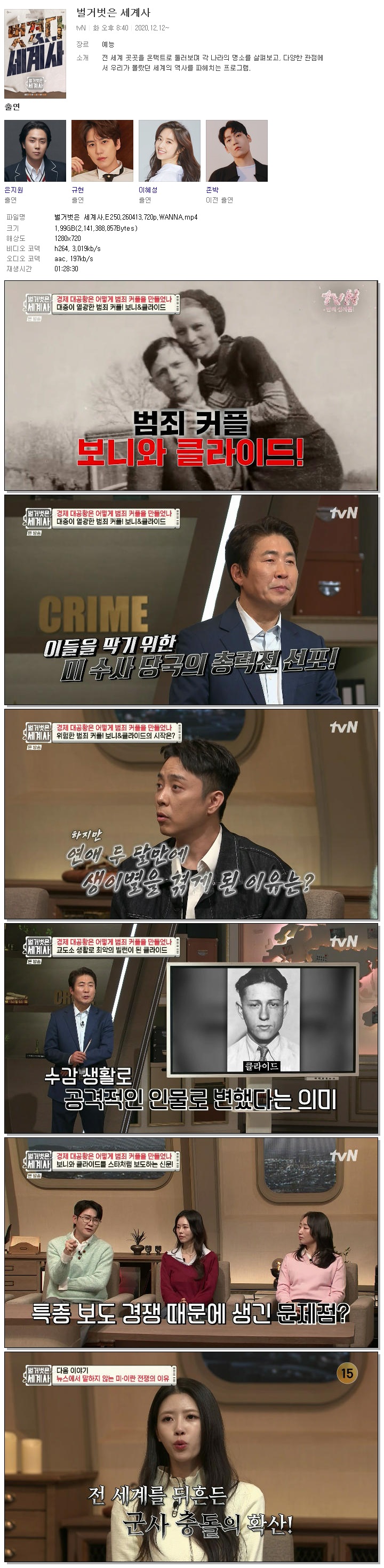 play_circle 동영상 벌거벗은 세계사 E250 벌거벗은 세계사.E250.260413.720p.WANNA person 바오*** calendar_today 2026.04.13 visibility 3,142 다운로드 1개 파일 folder_zip 벌거벗은 세계사.E250.260413.720p.WANNA.mp4 2.0 GB download