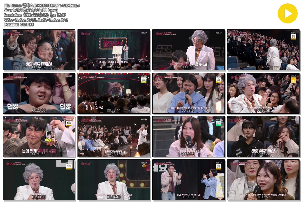play_circle 동영상 말자쇼 E14 NEXT 말자쇼.E14.260413.720p-NEXT person se*** calendar_today 2026.04.13 visibility 5,890 다운로드 1개 파일 folder_zip 말자쇼.E14.260413.720p-NEXT.mp4 1.7 GB download