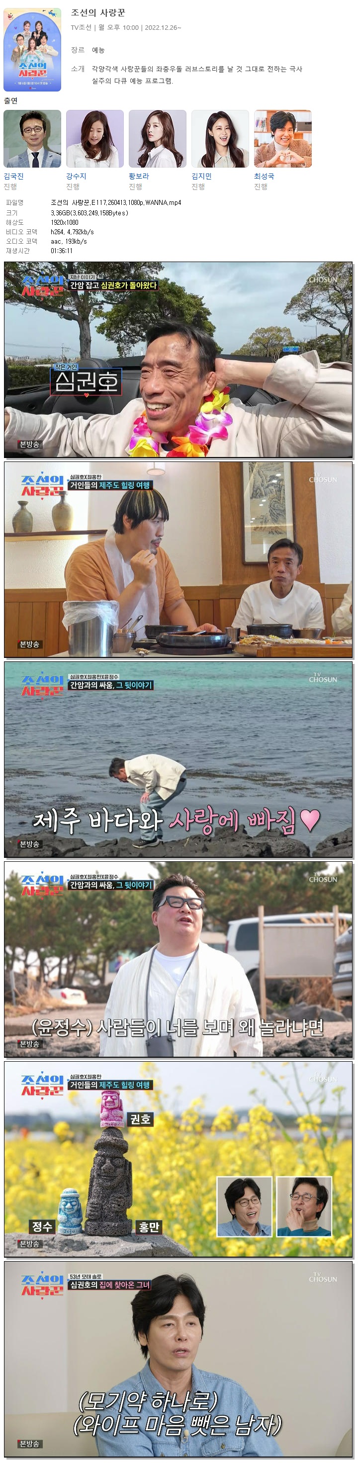 play_circle 동영상 조선의 사랑꾼 E117 조선의 사랑꾼.E117.260413.1080p.WANNA person 홀리*** calendar_today 2026.04.13 visibility 6,321 다운로드 1개 파일 folder_zip 조선의 사랑꾼.E117.260413.1080p.WANNA.mp4 3.4 GB download