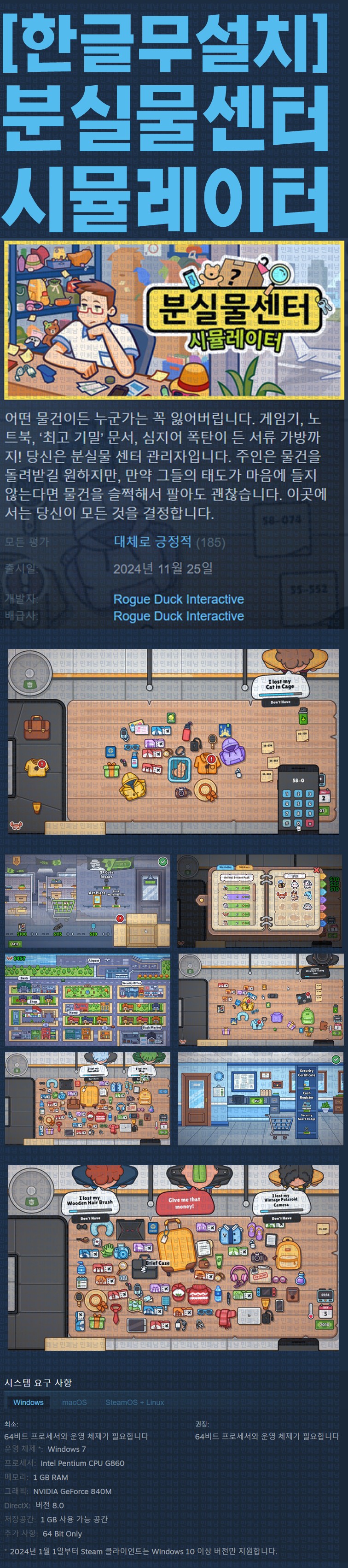 sports_esports 게임 한글무설치 분실물센터 시뮬레이터 [한글무설치] 분실물센터 시뮬레이터 v1.3.0 person ze*** calendar_today 2026.04.13 visibility 5,516 실행Lost But Found.exe 26.02.08 update 이지크립트:0000 다운로드 1개 파일 folder_zip Lost But Found Build.21437142.zip.ezc 218 MB download