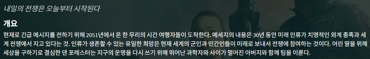 movie 영화 투모로우 미래 인류를 투모로우 워 "미래 인류를 구하려는 과거인들의 전쟁" person gg*** calendar_today 2026.04.14 visibility 5,046 다운로드 1개 파일 folder_zip 투모로우 워.mkv 2.4 GB download