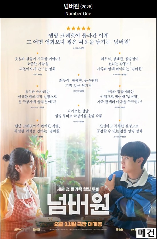 movie 영화 넘버원 최우식 공승연 [FHD] 넘버원 2026 (최우식,공승연,장혜진) [짓은 여운을 남기는 감동 무비] 최고화질 person 도리*** calendar_today 2026.04.14 visibility 7,521 다운로드 1개 파일 folder_zip 넘버원.2026.FHD.KOR.1080p.mp4 2.8 GB download