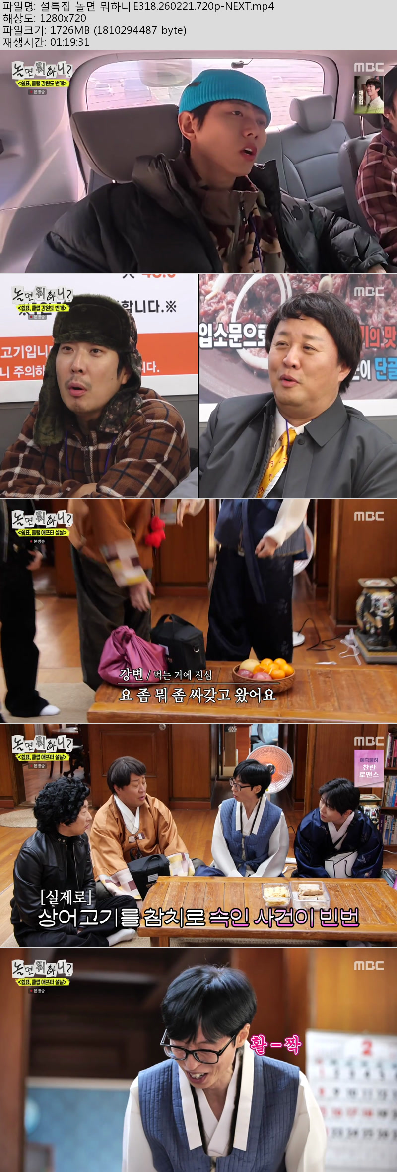 play_circle 동영상 놀면 뭐하니E318260221720p NEXT 놀면 뭐하니.E318.260221.720p-NEXT person kk*** calendar_today 2026.01.01 visibility 5,066 다운로드 1개 파일 folder_zip 설특집 놀면 뭐하니.E318.260221.720p-NEXT.mp4 1.7 GB download