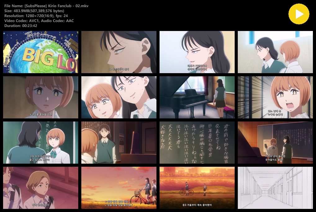 auto_awesome 애니 키리오 팬클럽 1280x720 키리오 팬클럽 (2026) - 02 (1280x720) person zz*** calendar_today 2026.04.14 visibility 6,220 다운로드 2개 파일 folder_zip [SubsPlease] Kirio Fanclub - 02.mkv 484 MB download folder_zip [SubsPlease] Kirio Fanclub - 02.srt download