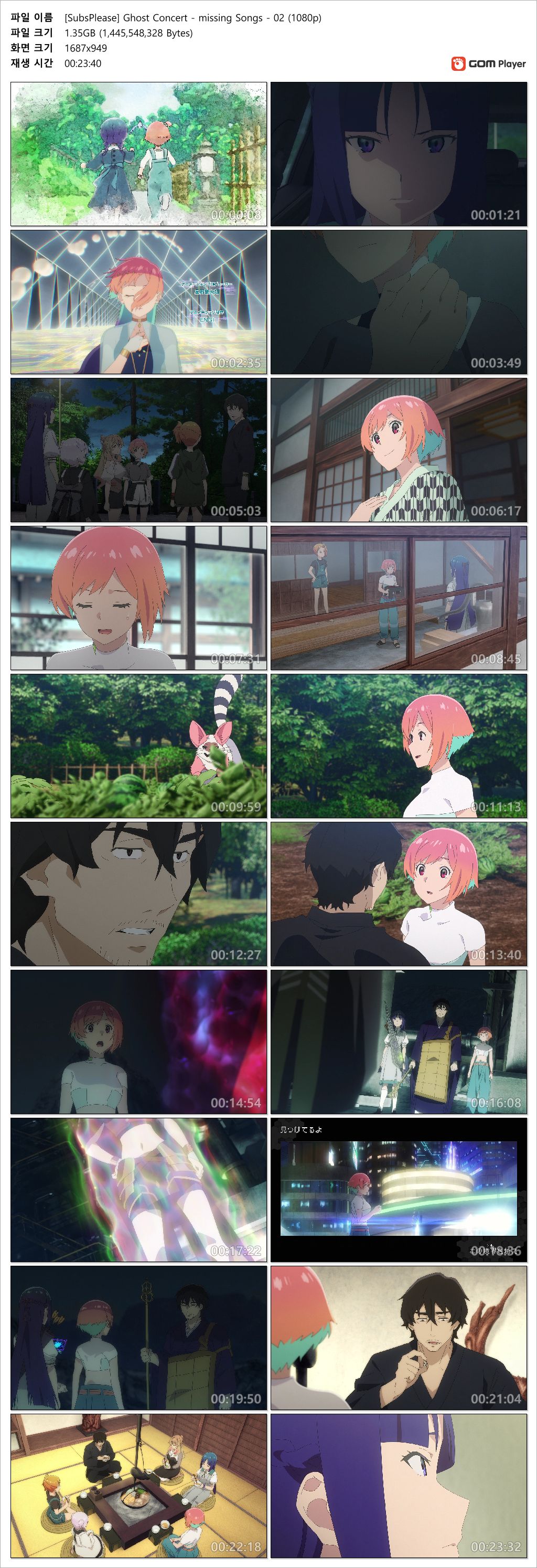 auto_awesome 애니 고스트 콘서트 missing 고스트 콘서트 ~missing Songs - 02화 (1920x1080 x264 AAC) person 인생*** calendar_today 2026.04.14 visibility 6,176 다운로드 2개 파일 folder_zip [SubsPlease] Ghost Concert - missing Songs - 02 (1080p).mkv 1.3 GB download folder_zip [SubsPlease] Ghost Concert - missing Songs - 02 (1080p).smi download
