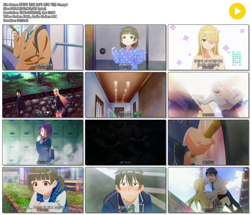 auto_awesome 애니 ANIPLUS 와타리 군의 [ANIPLUS] 와타리 군의 XX가 붕괴 직전 - 01 (1280x720) person 에어*** calendar_today 2026.04.14 visibility 6,876 다운로드 1개 파일 folder_zip 와타리 군의 XX가 붕괴 직전 01.mp4 347 MB download