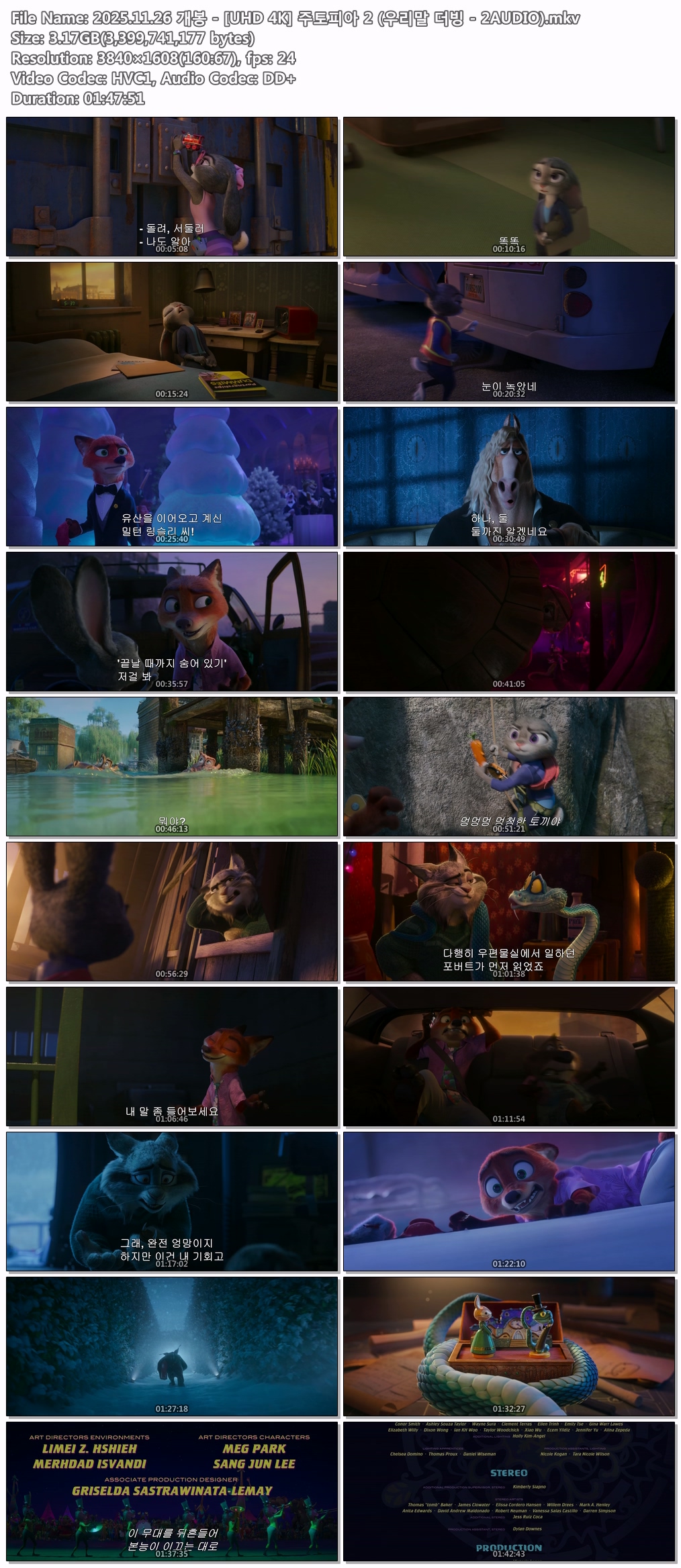 auto_awesome 애니 개봉 주토피아 우리말 2025.11.26 개봉 - [UHD 4K] 주토피아 2 (우리말 더빙 - 2AUDIO) person 07*** calendar_today 2026.04.14 visibility 6,884 다운로드 3개 파일 folder_zip 2025.11.26 개봉 - [UHD 4K] 주토피아 2 (우리말 더빙 - 2AUDIO).jpg 3.2 GB download folder_zip 2025.11.26 개봉 - [UHD 4K] 주토피아 2 (우리말 더빙 - 2AUDIO).mkv download folder_zip 2025.11.26 개봉 - [UHD 4K] 주토피아 2 (우리말 더빙 - 2AUDIO).smi download