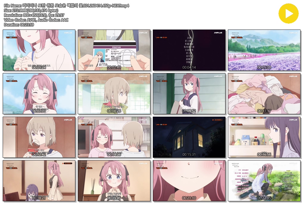 auto_awesome 애니 카미이나 보탄 취한 카미이나 보탄 취한 모습은 백합의 꽃.E01.260414.450p-NEXT person se*** calendar_today 2026.04.14 visibility 3,168 다운로드 1개 파일 folder_zip 카미이나 보탄 취한 모습은 백합의 꽃.E01.260414.450p-NEXT.mp4 273 MB download