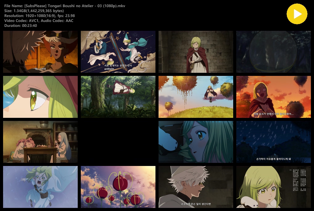 auto_awesome 애니 고깔모자의 아틀리에 1920x1080 고깔모자의 아틀리에 (2026) - 03 (1920x1080) person zz*** calendar_today 2026.04.14 visibility 7,776 다운로드 2개 파일 folder_zip [SubsPlease] Tongari Boushi no Atelier - 03 (1080p).mkv 1.3 GB download folder_zip [SubsPlease] Tongari Boushi no Atelier - 03 (1080p).srt download