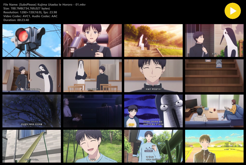 auto_awesome 애니 쿠지마 노래하면 집이 쿠지마 노래하면 집이 파다닥 (2026) - 01 (1280x720) person zz*** calendar_today 2026.04.14 visibility 3,876 다운로드 2개 파일 folder_zip [SubsPlease] Kujima Utaeba Ie Hororo - 01.mkv 701 MB download folder_zip [SubsPlease] Kujima Utaeba Ie Hororo - 01.srt download