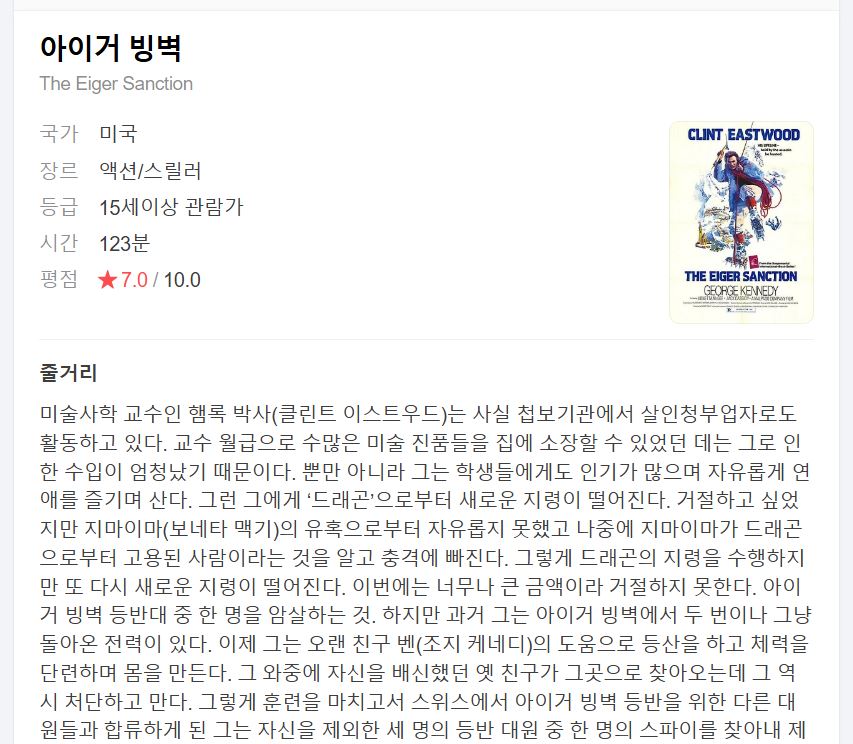 movie 영화 종동 아이거 빙벽 (종동)아이거 빙벽 (The Eiger Sanction, 1975년)-AMIABLE 1080 person so*** calendar_today 2026.04.15 visibility 5,429 다운로드 2개 파일 folder_zip The.Eiger.Sanction.1975.1080p.BluRay.X264-AMIABLE.mkv 8.7 GB download folder_zip The.Eiger.Sanction.1975.1080p.BluRay.X264-AMIABLE.smi download