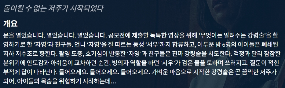 movie 영화 강령 귀신놀이 돌이킬 강령- 귀신놀이 "돌이킬 수 없는 저주가 시작되었다" person gg*** calendar_today 2026.04.15 visibility 4,591 다운로드 1개 파일 folder_zip 강령- 귀신놀이.mkv 1.3 GB download