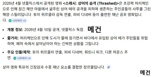 movie 영화 스래시 상어의 습격 [N] 스래시: 상어의 습격. 2026 (재난 공포 영화) person 메건*** calendar_today 2026.04.15 visibility 7,083 다운로드 1개 파일 folder_zip 스래시, 상어의 습격. 2026 (파일, 제목, 스샷 도용 금지!! 작성자 메건).mp4 2.8 GB download