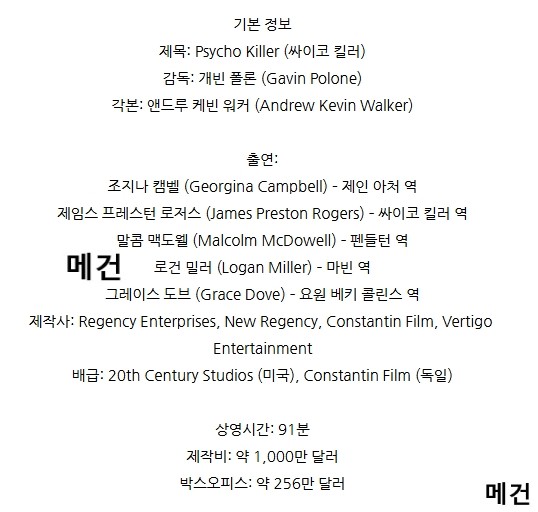 movie 영화 싸이코 킬러 Psycho [싸이코 킬러] Psycho Killer. 2026 (공포 스릴러 영화) person 메건*** calendar_today 2026.04.15 visibility 5,209 다운로드 1개 파일 folder_zip 싸이코 킬러. 2026 (파일, 제목, 스샷 도용 금지!! 작성자 메건).mkv 2.8 GB download