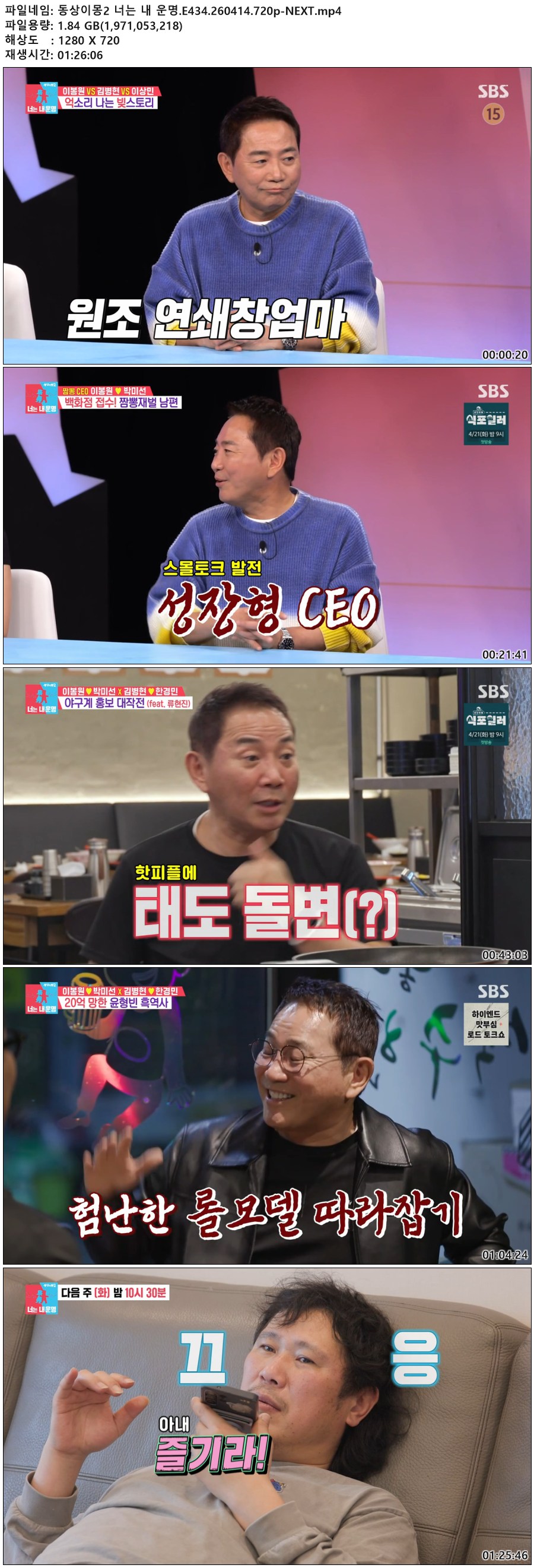 play_circle 동영상 동상이몽2 너는 운명 동상이몽2 너는 내 운명.E434.260414.720p-NEXT person qk*** calendar_today 2026.04.15 visibility 5,464 다운로드 1개 파일 folder_zip 동상이몽2 너는 내 운명.E434.260414.720p-NEXT.mp4 1.8 GB download