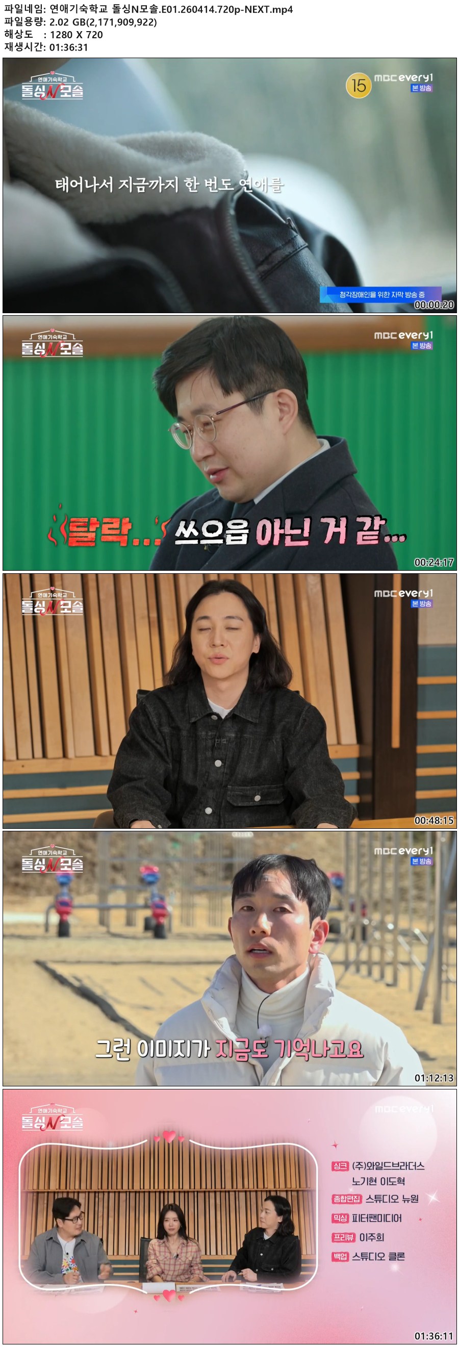 play_circle 동영상 연애기숙학교 돌싱N모솔 E01 연애기숙학교 돌싱N모솔.E01.260414.720p-NEXT person qk*** calendar_today 2026.04.15 visibility 5,405 다운로드 1개 파일 folder_zip 연애기숙학교 돌싱N모솔.E01.260414.720p-NEXT.mp4 2.0 GB download
