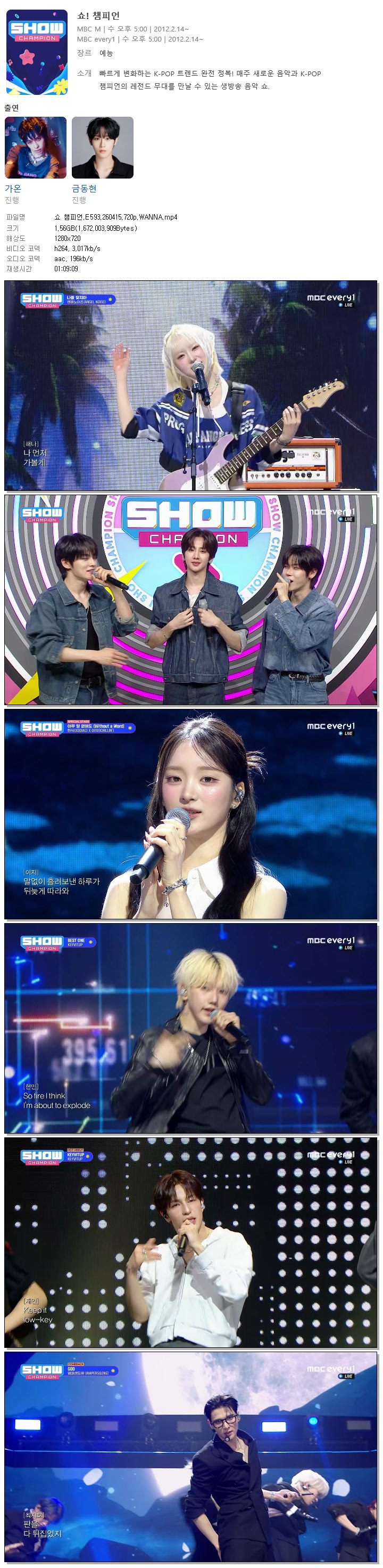 play_circle 동영상 챔피언 E593 WANNA 쇼 챔피언.E593.260415.720p.WANNA person 바오*** calendar_today 2026.04.15 visibility 3,300 다운로드 1개 파일 folder_zip 쇼 챔피언.E593.260415.720p.WANNA.mp4 1.6 GB download