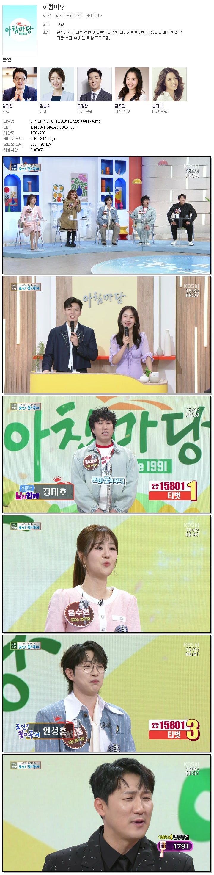 play_circle 동영상 아침마당 E10140 WANNA 아침마당.E10140.260415.720p.WANNA person 바오*** calendar_today 2026.04.15 visibility 6,547 다운로드 1개 파일 folder_zip 아침마당.E10140.260415.720p.WANNA.mp4 1.4 GB download