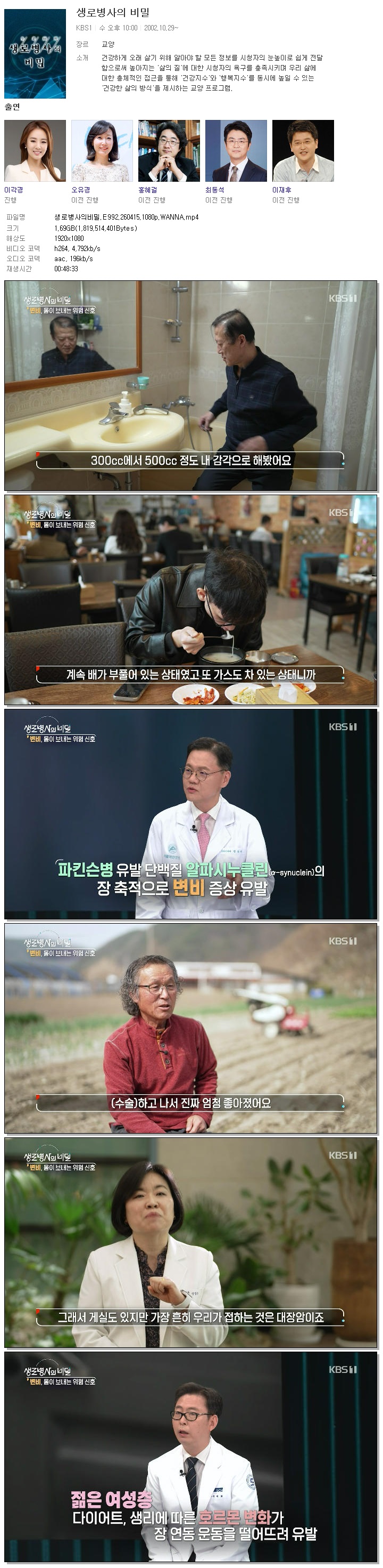 play_circle 동영상 생로병사의비밀 E992 WANNA 생로병사의비밀.E992.260415.1080p.WANNA person 홀리*** calendar_today 2026.04.15 visibility 4,062 다운로드 1개 파일 folder_zip 생로병사의비밀.E992.260415.1080p.WANNA.mp4 1.7 GB download