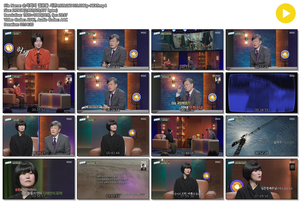 play_circle 동영상 손석희의 질문들 시즌4 손석희의 질문들 시즌4.E09.260415.1080p-NEXT person se*** calendar_today 2026.04.15 visibility 3,893 다운로드 1개 파일 folder_zip 손석희의 질문들 시즌4.E09.260415.1080p-NEXT.mp4 2.8 GB download