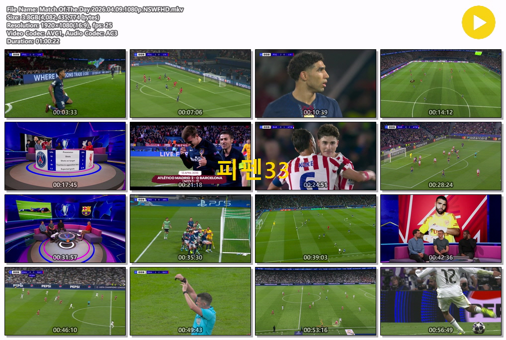 play_circle 동영상 UCL 8강 G1 [핖.UCL] 26.04.09 8강 G1 M.O.T.D [1080P.FHD] person MJ*** calendar_today 2026.04.15 visibility 5,095 다운로드 1개 파일 folder_zip Match.Of.The.Day.2026.04.09.1080p.NSWFHD.mkv 3.8 GB download
