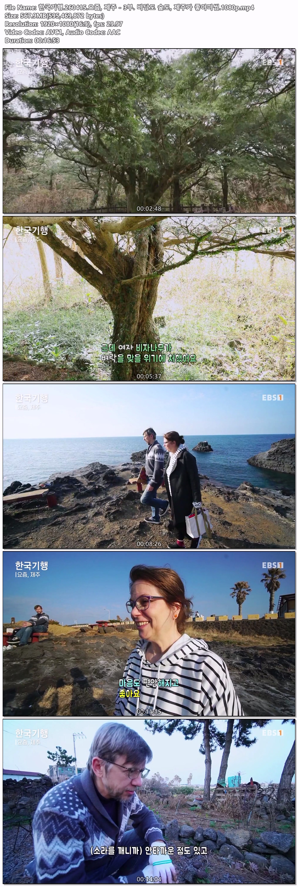 play_circle 동영상 한국기행 요즘 제주 한국기행.260415.요즘, 제주 - 3부. 바당도 숲도, 제주가 좋아마씸.1080p person iq*** calendar_today 2026.04.15 visibility 5,657 다운로드 1개 파일 folder_zip 한국기행.260415.요즘, 제주 - 3부. 바당도 숲도, 제주가 좋아마씸.1080p.mp4 568 MB download