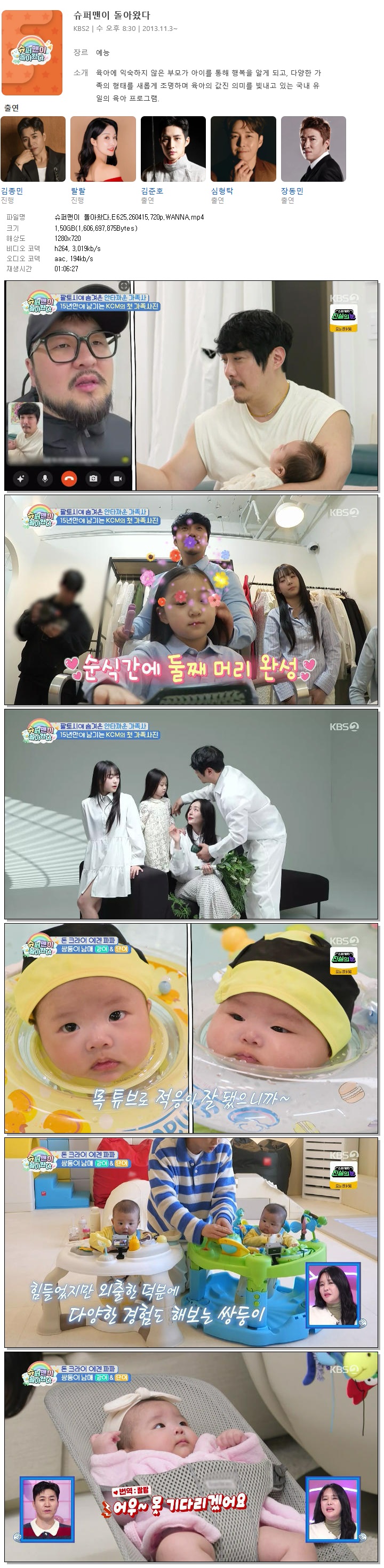 play_circle 동영상 슈퍼맨이 돌아왔다 E625 슈퍼맨이 돌아왔다.E625.260415.720p.WANNA person 바오*** calendar_today 2026.04.15 visibility 3,139 다운로드 1개 파일 folder_zip 슈퍼맨이 돌아왔다.E625.260415.720p.WANNA.mp4 1.5 GB download