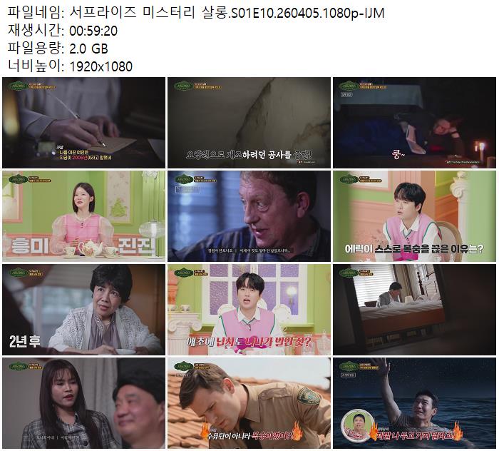 play_circle 동영상 서프라이즈 미스터리 살롱 서프라이즈 미스터리 살롱.S01E10.260405.1080p-IJM person zn*** calendar_today 2026.04.15 visibility 5,933 다운로드 1개 파일 folder_zip 서프라이즈 미스터리 살롱.S01E10.260405.1080p-IJM.mp4 2.0 GB download