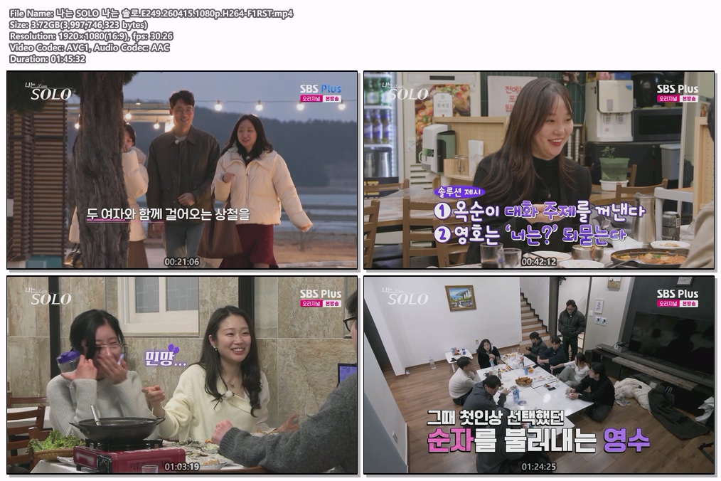 play_circle 동영상 나는 SOLO 솔로 나는 SOLO 나는 솔로.E249.260415.1080p.H264-F1RST person he*** calendar_today 2026.04.15 visibility 6,342 다운로드 1개 파일 folder_zip 나는 SOLO 나는 솔로.E249.260415.1080p.H264-F1RST.mp4 3.7 GB download