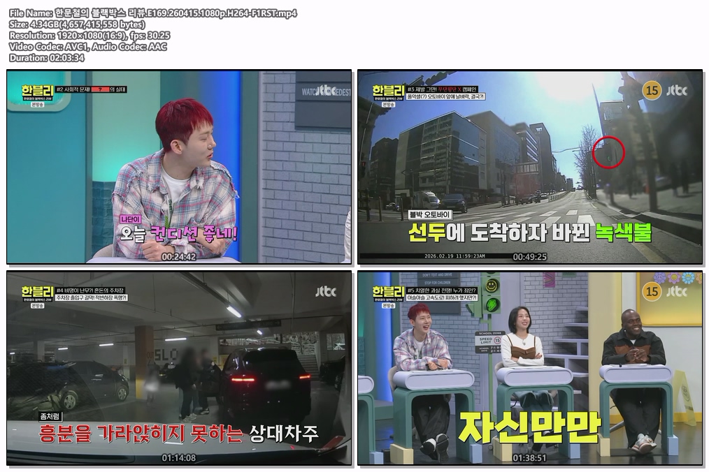 play_circle 동영상 한문철의 블랙박스 리뷰 한문철의 블랙박스 리뷰.E169.260415.1080p.H264-F1RST person he*** calendar_today 2026.04.15 visibility 5,755 다운로드 1개 파일 folder_zip 한문철의 블랙박스 리뷰.E169.260415.1080p.H264-F1RST.mp4 4.3 GB download