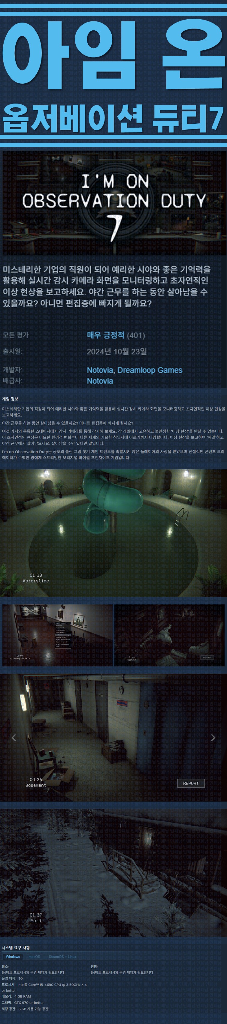 sports_esports 게임 한글무설치 아임 옵저베이션 [한글무설치] 아임 온 옵저베이션 듀티 7 v1.1.1 person ze*** calendar_today 2026.04.15 visibility 4,186 실행I'm on Observation Duty 7.exe25.10.11 update 이지크립트:0000 다운로드 1개 파일 folder_zip Im on Observation Duty 7 Build.20350402.zip.ezc 1.3 GB download