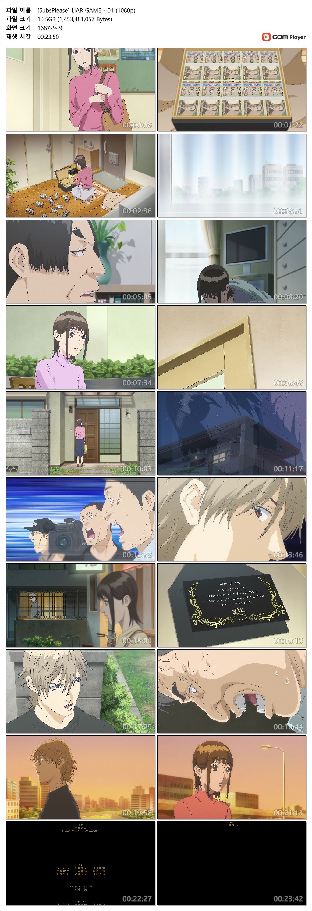 auto_awesome 애니 라이어 게임 01화 라이어 게임 - 01화 (1920x1080 x264 AAC) person 인생*** calendar_today 2026.04.15 visibility 7,713 다운로드 2개 파일 folder_zip [SubsPlease] LIAR GAME - 01 (1080p).mkv 1.4 GB download folder_zip [SubsPlease] LIAR GAME - 01 (1080p).smi download