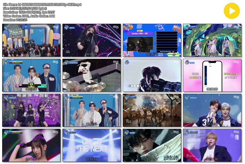 play_circle 동영상 COUNTDOWN E924 NEXT M COUNTDOWN.E924.260416.1080p-NEXT person se*** calendar_today 2026.04.16 visibility 4,429 다운로드 1개 파일 folder_zip M COUNTDOWN.E924.260416.1080p-NEXT.mp4 3.0 GB download