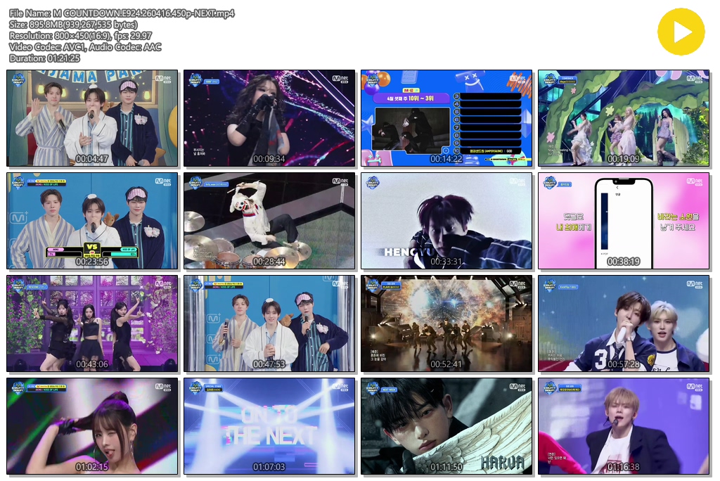 play_circle 동영상 COUNTDOWN E924 NEXT M COUNTDOWN.E924.260416.450p-NEXT person se*** calendar_today 2026.04.16 visibility 7,693 다운로드 1개 파일 folder_zip M COUNTDOWN.E924.260416.450p-NEXT.mp4 896 MB download