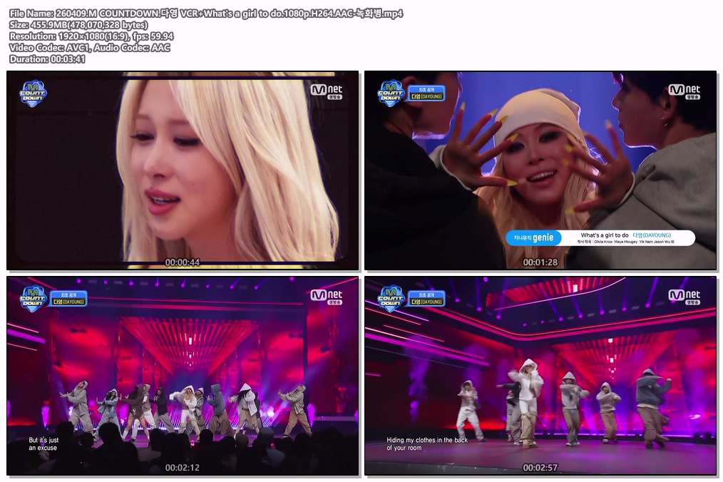 play_circle 동영상 COUNTDOWN 걸그룹 Baby 260409.M COUNTDOWN.걸그룹 person he*** calendar_today 2026.04.16 visibility 5,565 다운로드 12개 파일 folder_zip 260409.M COUNTDOWN.Baby DONT Cry Bittersweet.1080p.H264.AAC-녹화병.mp4 5.1 GB download folder_zip 260409.M COUNTDOWN.IRENE Biggest Fan.1080p.H264.AAC-녹화병.mp4 download folder_zip 260409.M COUNTDOWN.KISS OF LIFE Who is she.1080p.H264.AAC-녹화병.mp4 download folder_zip 260409.M COUNTDOWN.KISS OF LIFE 컴백 인터뷰.1080p.H264.AAC-녹화병.mp4 download folder_zip 260409.M COUNTDOWN.Kep1er KILLA.1080p.H264.AAC-녹화병.mp4 download folder_zip 260409.M COUNTDOWN.RESCENE Runaway.1080p.H264.AAC-녹화병.mp4 download folder_zip 260409.M COUNTDOWN.YOUNG POSSE we don't go to bed tonight.1080p.H264.AAC-녹화병.mp4 download folder_zip 260409.M COUNTDOWN.cosmosy Silence ~ body & soul ~.1080p.H264.AAC-녹화병.mp4 download folder_zip 260409.M COUNTDOWN.다영 VCR+What's a girl to do.1080p.H264.AAC-녹화병.mp4 download folder_zip 260409.M COUNTDOWN.화사 So Cute.1080p.H264.AAC-녹화병.mp4 download folder_zip 260409.M COUNTDOWN.화사 다영 컴백 인터뷰.1080p.H264.AAC-녹화병.mp4 download folder_zip 260409.M COUNTDOWN.전 출연진 엔딩.1080p.H264.AAC-녹화병.mp4 download