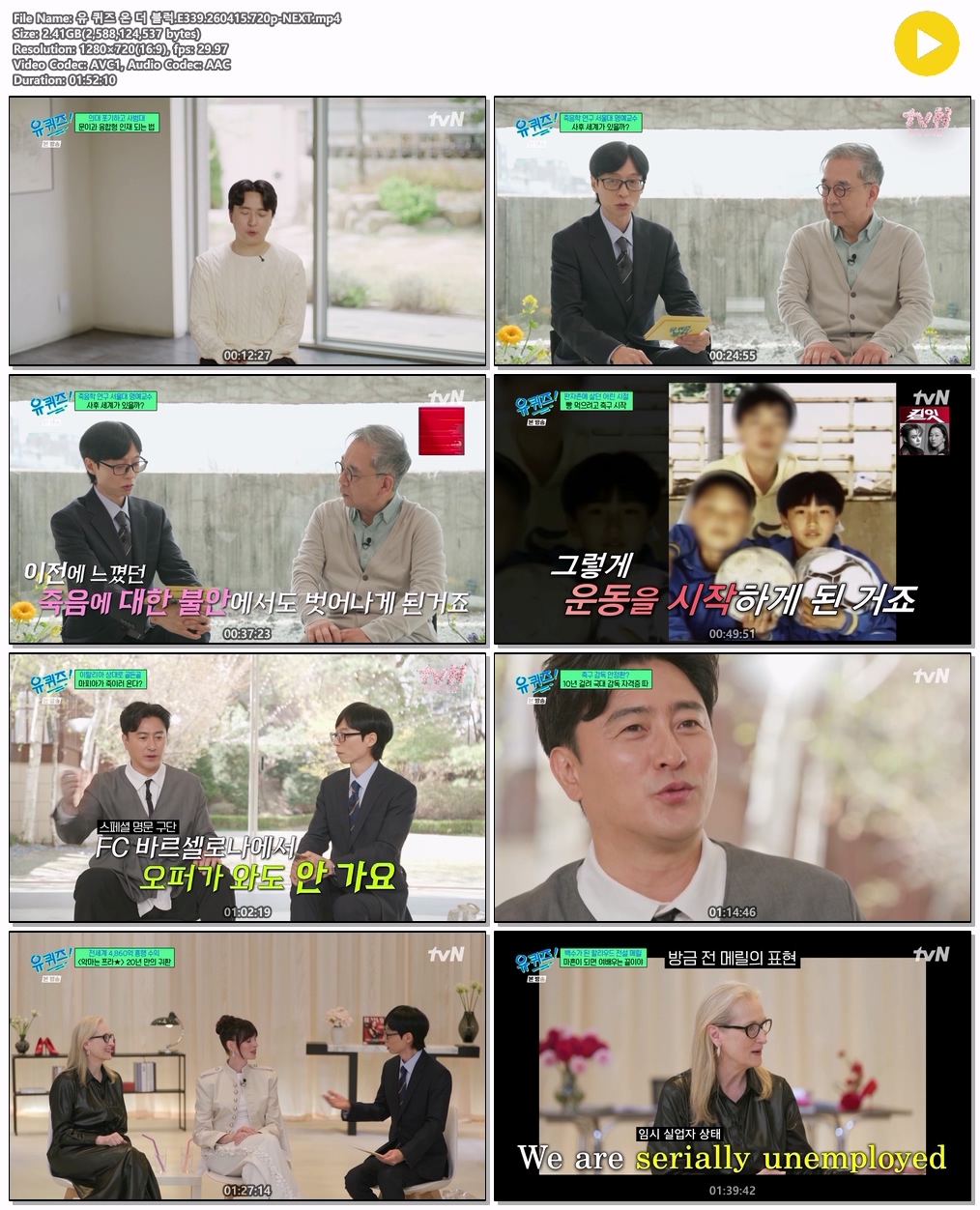 play_circle 동영상 퀴즈 블럭 E339 유 퀴즈 온 더 블럭.E339.260415.720p-NEXT person tm*** calendar_today 2026.04.16 visibility 5,461 다운로드 1개 파일 folder_zip 유 퀴즈 온 더 블럭.E339.260415.720p-NEXT.mp4 2.4 GB download